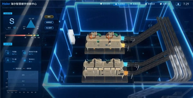 在商业建筑领域,海尔气悬浮空调获得银奖,其突破在于实现“0摩擦运转”,将机械损耗降至极限。以浙江明禾新能科技新园区为例,采用海尔气悬浮方案后,平均COP高达6.49,远超行业一级能效,与传统冷水机组相比节能超50%。更关键的是,设备接入智控平台后还能再节能20%,实现“硬件节能+管理节能”的双重增益。